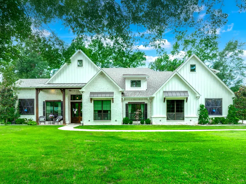 Welcome to your private country retreat in East Texas near Tyler! This 4141 sq. ft., 4 bedroom, 4.5 bath custom home sits on approx.15.02 scenic acres with a spring-fed pond stocked with bass, perch, & catfish. Natural beauty surrounds you including wet weather creeks that feed pon-d & are enjoyed by wildlife including herons, eagles, owls, & deer. Double front doors open to an inviting entry with an arched barrel wood ceiling. Just off the foyer is a charming office/bonus room with loft for viewing the pond & peaceful wooded acreage. At the heart of the home is the great room with soaring vaulted beamed ceiling &WBFP with abundant natural light from the 20' wall of windows. The beautiful chef's kitchen features an island that seats 4+,a butler's pantry with walk-in storage and a charming wet bar complete with wine barrel sink, wine fridge, & custom cabinetry. Wooden accent walls are strategically located throughout the home creating warmth & character. A centrally located utility room offers abundant storage & easy access, including a sink & space for a 2nd refrigerator. The hallway to the spacious primary suite with spa-like bath also accesses a personal office. Three large guest bedrooms each have en-suite baths for comfort & privacy. Upstairs, a bonus room provides space for a game room, extra living area, or add'l bedroom as needed. Enjoy the outdoors from a covered side porch that leads to an 1800 sq. ft. barn with a covered porch & newly added outdoor fireplace. This structure includes the original owner's approximately 500 sq. ft. living quarters with open living & kitchen, dining bar, full bath & upstairs bedroom - perfect for guests. Also inside is an 850 sq. ft. temperature controlled man-cave, shop or hobby area, plus add'l garage currently used for storage. Also located on the property is an approx. 1200 sq. ft. horse barn & utility cover for equipment. Explore all this exceptional property offers for privacy & comfort in the beauty of East Texas.