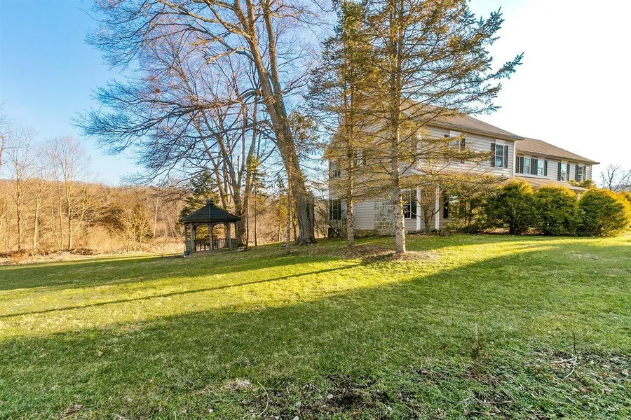 This expanded, renovated (2010) historic 10-RM, 5-BR & 3.5 BTH colonial sits on 8.44 beautiful acres with rolling hills, a stream & mtn views... perfect for your horses, simple country tranquility, sunrises & sunsets & wildlife appreciation. Custom craftsmnshp throughout w light-filled oversized Anderson windows, beautiful trims, chair rails, paneled wainscoting, hardwood 1st floors & wide staircases. The eat-in-kitchen features granite counters, granite & tile backsplash, double stainless steel sink & stainless steel appliances with a gas-electric combo stovetop/oven. The family rooms's slider opens to a back stone patio; the historic fireplaces adorn the DR & LR & the entry by the extraordinary woodwork. The spacious 27x18 MBR features a high trey ceiling, 7 light-filled windows & a 12x11 walk-in closet. The master batyh includes a Jacuzzi, a separate tiled shower, a double vanity & a ...