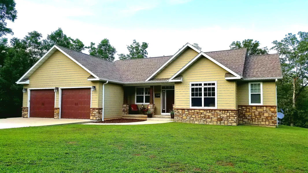 Gorgeous Home!! Fabulous Craftsman style home has everything you need! This 5 bedroom 2 1/2 bath home is tucked in the woods on a large beautifully landscaped yard with plenty of outdoor living area. Perfect for entertaining or just lounging with the family. The interior features an open floor plan, custom Hickory cabinets, large tinted windows throughout, 3 panel craftsman style doors, jetted tub as well as hardwood and tile flooring, 9 ft. walls on both levels Also equipped with a central vacuum, sound system and water softener system. Your guests will love the fully finished basement and its newly converted man cave with its rustic and fun decor. Exterior features large multi-level deck and patio with hot tub, fire pit, French drains, concrete and stone siding on 8.65 beautiful acres!