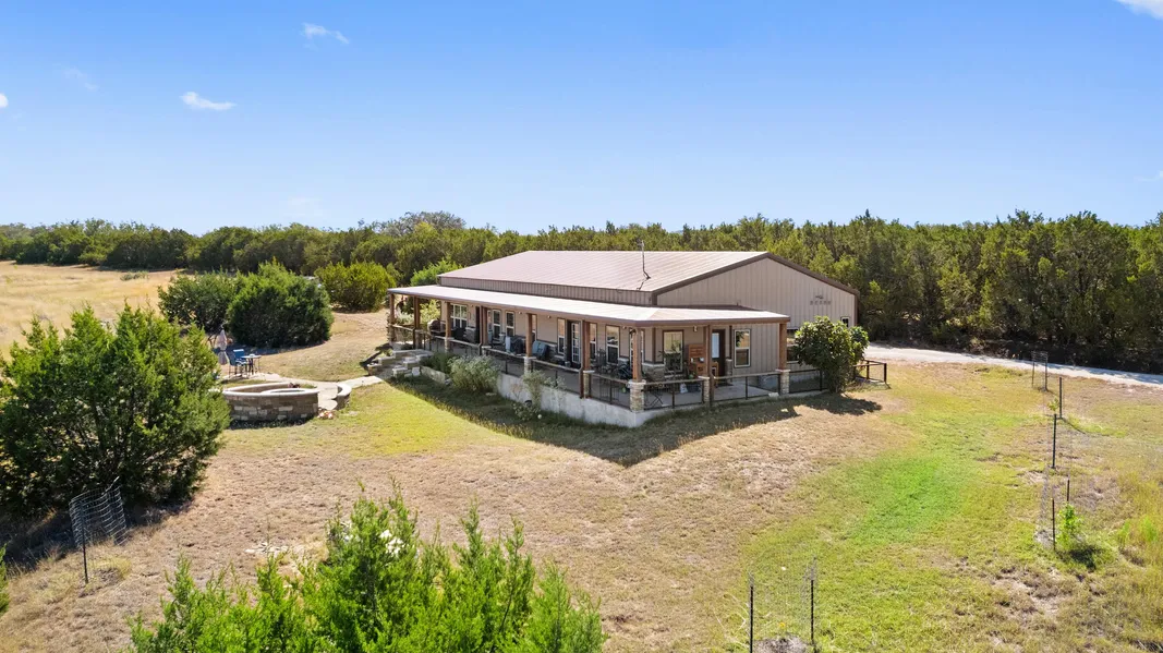 Fantastic property, located within 5 minutes from thriving downtown Johnson City, Texas, sitting on 32 +/- Wildlife Exempt Acres with approximately 1,880 feet of frontage on Flat Creek Road. This property offers a main home, 3 Arched Cabins and two metal buildings, one of which is being used as an office and is fully insulated with mini-split and running water. The main home is 2,760 sqft and consist of 3 bedrooms, 3 full bathrooms and two offices. A very spacious kitchen with custom cabinetry and a walk-in pantry and wine room. In the living area you will find a custom wall library. The primary bathroom has 2 shower heads with custom built cabinets in closet. The front guest bedroom has a jacuzzi tub. Attached is a two-car carport and large back deck with big Hill Country views. Water is provided by the well which has a 3-stage filtration system providing clean water throughout the property. 2 of the 3 cabins located on the property are 300 sqft, fully furnished with kitchenettes, and window units. The 3rd cabin is larger (600 sqft) offering a full kitchen and two mini-splits. This could potentially be a opportunity for nightly rentals! Conveniently located only 1 hour from Austin and San Antonio and centrally located to entertainment, shopping, and eateries in Marble Falls, Horseshoe Bay, Johnson City, Fredericksburg, and Dripping Springs. A great opportunity in one of the fastest growing areas in the U.S.A.