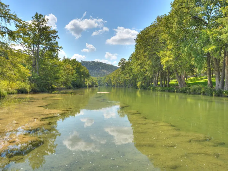 Enchanting 2 acre estate on the Blanco River. This is the perfect gathering spot for family and friends!Enter from the gated entry. Meander down the drive-way passing eclectic yard art, a one bedroom cottage, complete with kitchen, stacked laundry closet, a loft in addition to the one bedroom, wood burning stove, perfect for giving your guests autonomy. A fire pit there between the cottage and party barn, if only the walls could talk! This barn is perfect for parties, or just hanging out.Included is a full bathroom as well as an office space with wet bar and a sleeping deck upstairs that could sleep a minimum of ten, or provide a great bedroom for the older kids. As you get closer to the house you will note a pond with waterfall on the right next to the green house off the circle drive.Attached to the Greenhouse is a two car garage. Exploring further, the home, a tasteful artfully appoin...