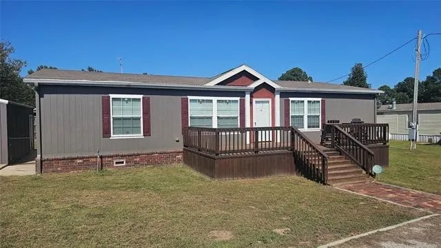 PREMIER LAKESIDE RETREAT IN EUFAULA'S LAKEWOOD FOREST #2 WITH NEW PRICE! -Step into this stunning Champion double-wide mobile home, freshly exterior-painted and meticulously maintained. With 3 spacious bedrooms and 2 full bathrooms, the open floor plan invites effortless living and entertaining. Outside, a huge circular driveway offers ample parking and boat access, while the private backyard provides a serene escape. Don't miss the attached 20x24 metal shop/garage—perfect for hobbies, lake storage, or projects. Nestled in the quiet, well-established Lakewood Forest #2 community on the shores of Lake Eufaula, this home embodies the ultimate lake life. Reel in crappie, bass, or catfish from prime nearby spots, or head to "Ski Alley" for family-friendly wakeboarding and jet ski adventures. Eufaula's sandiest beaches are just a short boat ride away! Convenience is key: A quick 5-minute golf cart ride through the community leads to a small sandy beach. Multiple boat ramps and Nine Marina are only 10 minutes east, and the vibrant city of Eufaula is a mere 10-minute drive west. If you're familiar with massive Lake Eufaula, you know location is everything—this premier spot delivers unmatched access and value. Ready to make lasting lake memories? Call today to learn more and schedule your private viewing!