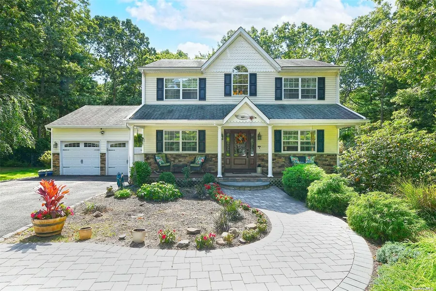 Welcome to this charming 3-bedroom,2.5 bath Center Hall Colonial, a serene retreat nestled in a peaceful, park-like setting. Step inside to find a welcoming foyer leading to a formal dining room, spacious living room, and a cozy den-ideal for both entertaining and everyday living. The heart of the house is the spacious kitchen, featuring gleaming countertops, a central island perfect for causal dining, and abundant natural light streaming through sliders that lead to a new deck. Outside, the large paver patio extends your living space into the lush, private backyard,where a tranquil koi pond and picturesque landscaping create a zen-like atmosphere.Enjoy the sights and sounds of local wildlife in the peaceful oasis. The full unfinished basement with 9-foot ceilings and egress windows offers endless potential for customization to suit your needs, whether it's home gym, playroom, or additio...