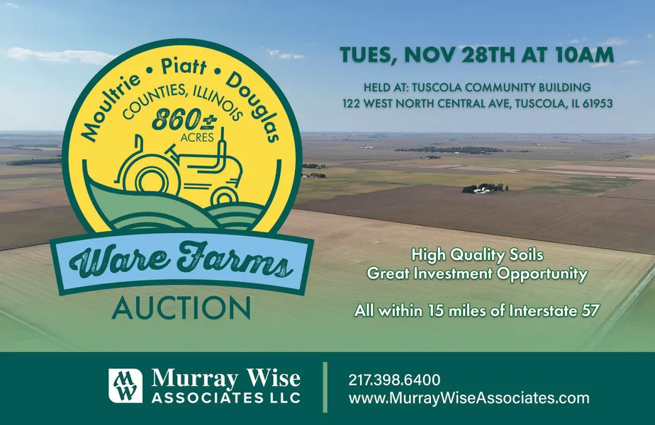 This High-Quality farmland located in central Illinois offers excellent soils. This is a rare investment opportunity to own a large amount of farmland acreage. The property contains 860.63 total acres and 823.75 FSA DCP Cropland Acres. This property is 95% tillable!