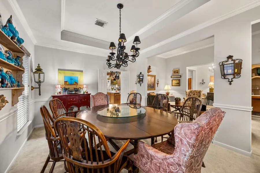 Lovely one story home in the coveted Falcon Ranch neighborhood. More traditional floorpan complimented with raised ceilings, crown molding, large primary suite, large kitchen complete with island, & tree lined back yard!. This 3 bed THREE bath home is zoned to prestigious Katy ISD. Truly a home to be seen to believe. Set up your showing today!