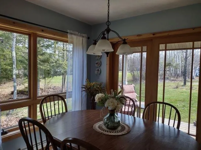 Beautiful Modern Home nestled away in the woods on the beautiful Falls River outside of L'Anse . The 4 bedroom house has all the modern conveniences one would want in a home . This home is move in ready with spectacular views of the Falls River as it runs to beautiful Lake Superior in L'Anse Michigan . The hardwood floors throughout the home make the rooms glisten with the sun shining through the large windows . This is a must see Gem hidden in the wood s just outside L'Anse . The Falls River flows into the southern end of Lake Superior's Keweenaw Bay. This is a Blue Ribbon trout stream, and because several remarkable falls are located along the Falls River it is an attraction that draws Baraga County Tourists. The Falls River was well named. There are a lot of small waterfalls along this river - By some counts there are a dozen falls, although some are quite small. The river has four main waterfalls, the Lower Falls just west of the Village, the Middle Falls, a half mile upstream (follow the path upstream that runs alongside a high bluff), the Un-named Falls by the US-41 bridge, and the largest is Power House Falls (about 1.5 miles south of the Village). This falls is 15-Feet High and 40-Feet Wide. There are many other drops of various sizes between Power House Falls and the Upper Unnamed Falls. The final three drops are located in the city itself, and there is a parking lot and a signed trail leading upstream from US-41 by the Falls River Bridge that takes you first to the Lower falls, and then to the Middle falls. The Upper Un-Named falls, a five foot drop, is just south of where US-41 crosses the Falls River. Spring Steelhead anglers report good bites on this river. If you don't fish, you can just relax and enjoy the sound of the flowing water! The Village of L'Anse is only minutes away. Here you can boat, fish and swim on the largest freshwater lake in the world. Fall color tours and hiking Little Mountain! In Winter snowmobiling and cross country is popular! You will not find a home more move in ready or more for your money . This is a hidden Gem in the woods 5 minutes from L'Anse, 30 minutes to Houghton and an hour to Marquette. Baraga County is one of the Upper Peninsulas most complete counties with endless hunting , fishing, trail riding , and adventure seeking areas with towns close enough to shop and enjoy sporting events . The house is beautifully crafted and cared for . Someone will be very lucky.