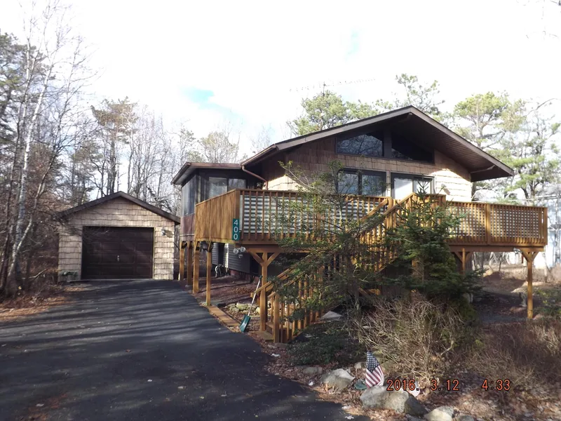 If your looking for a Father/Son property this is the home you need to see. Located in an amenity filled community features include a spacious open floor plan, beamed cathedral ceilings, brick fireplace, dual sliders to the deck and a light & airy enclosed porch with access to the grilling deck, the lower level offers a living room, eat-in kitchen, half bath, two bedrooms and an outside entrance, whole house generator for worry free living, 1-car detached garage and a paved driveway.