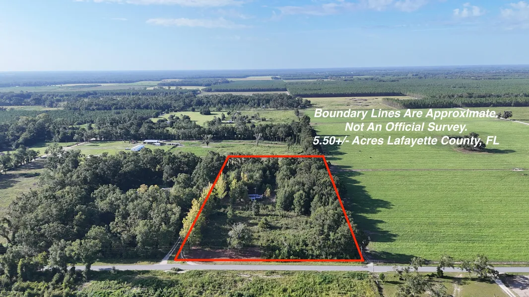 Contact Jerrod Trainer at 850-869-9872 for more information! Check out this fantastic 5.50+/- acres in beautiful Lafayette County, FL! This awesome property features 379+/- feet of paved road frontage! The land is currently naturally wooded with some mature florida hardwoods, pines, scrub brush, and bamboo. Some land clearing has recently been done at the front of the property, and in the middle of the property. Continue clearing the land how you desire, or leave it the way it is to ensure maximum privacy! The property is equipped with full utilities in place. Old well, old septic, and power are on the property. No guarantees as to what condition the utilities are in. Being sold as is. Buyers are welcome to have inspected. This amazing property is completely high and dry! 100% flood zone X which means not in the flood zone. Zero wetlands also. There is an old single wide trailer as well as a few storage shed buildings on the property. The trailer and sheds are of little to no value. The value is in the land only. This would be a great property to build your dream home, or put your new manufactured/mobile home on. Some land clearing, a driveway, plus the utilities would give you a great head start. This would also make a nice potential hunting/getaway camp. Again most of the heavy lifting is done. All you would need is your own living quarters. The owner does NOT have the title to the single wide trailer. NO title to the single wide trailer will convey in the sale. It is NOT recommended to enter the single wide trailer, or other buildings. IF YOU CHOOSE TO ENTER THEN YOU'RE DOING SO AT YOUR OWN RISK. Owner, and Broker are NOT responsible/liable for any injury. The majestic Suwannee River as well as a public boat ramp is only 10 minutes away! Branford, FL is only 10 minutes away for all your shopping, dining, and entertainment needs. Mayo, FL is less than 25 minutes away. Lake City, FL is less than 40 minutes away. The Gulf of America is only 45 minutes away. Gainesville, FL is just over an hour away.