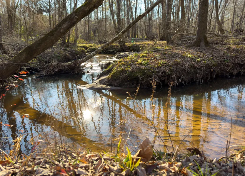 Timber resources are diverse with multiple age classes: roughly 41 acres of 7-year-old pine/hardwood regeneration (ideal bedding and browse), 73 acres of mature natural pine and hardwood, and 20 acres of bottomland hardwood buffering the creek. Three established game patches are in place, with numerous additional locations suitable for expanding food plots.