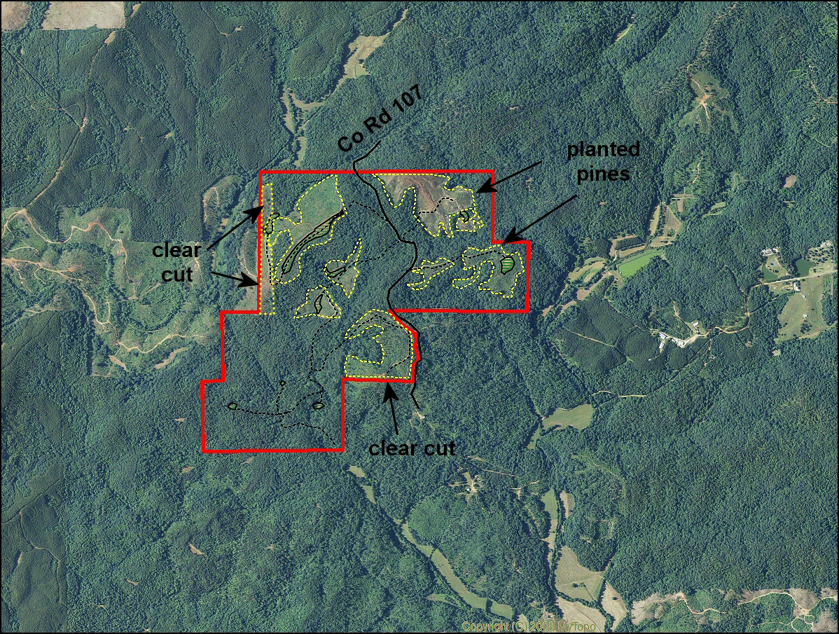 About 83 acres of planted longleaf pines 6 to 9 years of age. Another 33 acres of partial-cut or clear cut timber