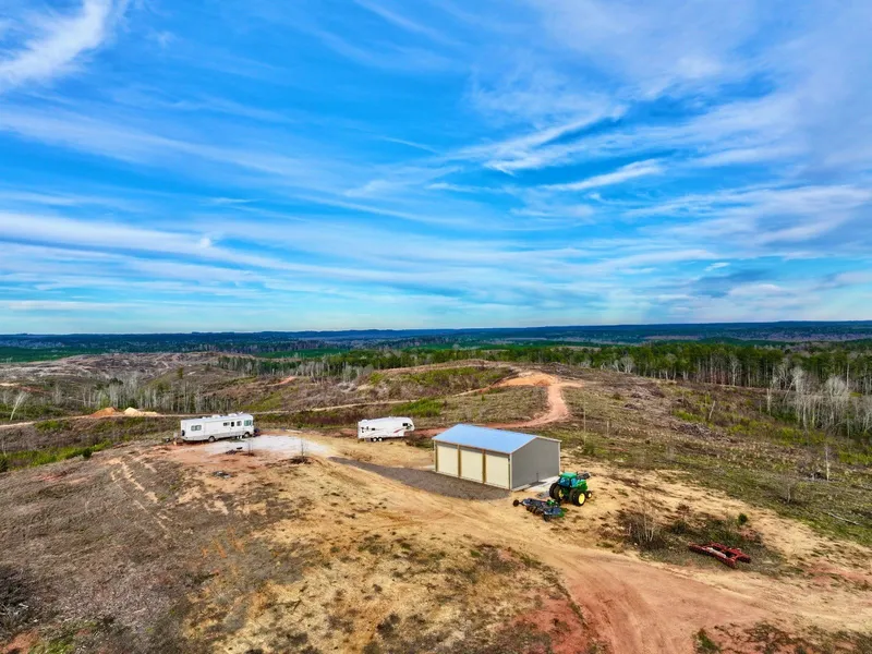 Welcome to a turn-key hunting and recreational paradise in the heart of Gosport. This 141-acre tract offers privacy, breathtaking views, and everything needed for weekend escapes or a long-term investment in Alabama land. Property Highlights: •141 acres with rolling terrain and stunning sunset views •Road frontage with easy access •Clear-cut 3 years ago with healthy natural regrowth •Well-established internal road system leading to hunting patches •Excellent deer & turkey hunting •Ideal for recreation, hunting camp, or future homesite ? Camp Improvements: •Camp house / shop on slab •3 roll-up doors •Water & power •Kitchen and bathroom •Open camp-style floor plan •Two campers convey with the property •Two tractors convey, making this property truly move-in ready for land management and hunting season Equipment & Campers That Convey: •2004 Fifth Wheel - 36 ft Cruiser •2000 Fleetwood Bounder - drivable, gas engine •1985 John Deere 440 - enclosed cab with 2024 Batwing 15-ft bush hog •1993 Kubota 2350 tractor with box blade, ideal for grading and maintaining roadways and driveway Utilities Available: •Power •City water •Septic system available Whether you're looking for a premier hunting property, a private recreational retreat, or a land investment with infrastructure already in place, this property checks every box.