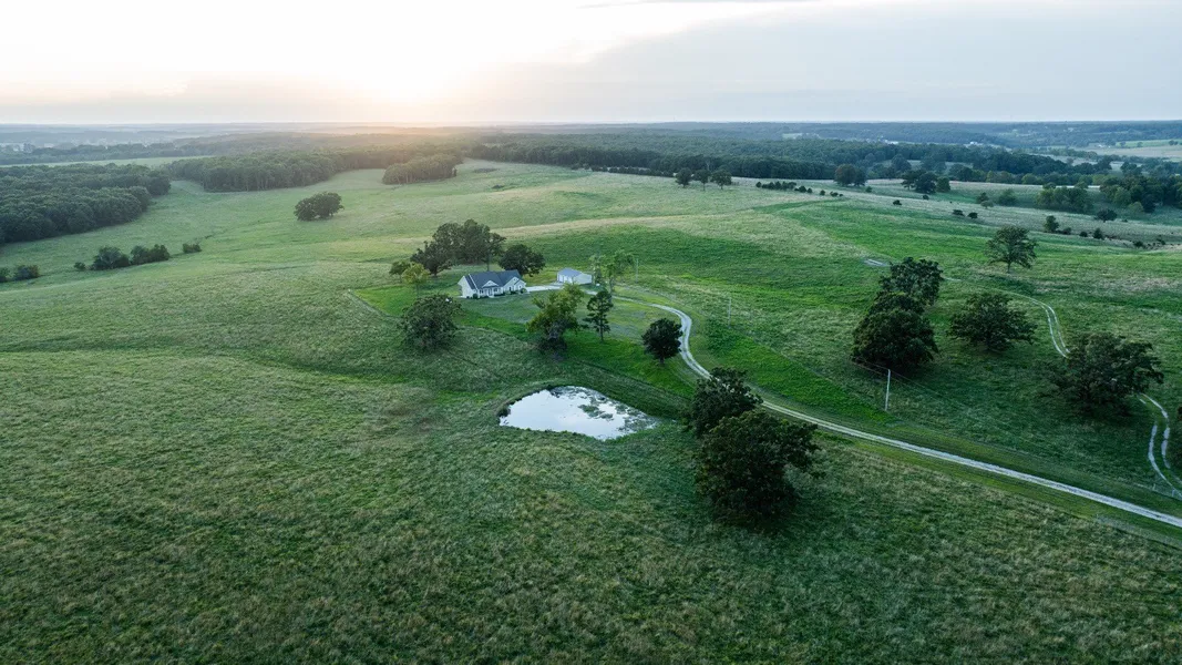 Located ten miles east of Marshfield, in the beautiful cattle country of southern Missouri, Bowen Creek Ranch spans 1,277± acres of premier ground. This self-sufficient operation currently supports over 400 cow-calf pairs without any outsourcing, thanks to a well-designed infrastructure and exceptional land quality. The ranch features an impressive blend of soils, high-yield hay fields, and creek-bottom crop ground used for silage and winter feeding. With rotational grazing practices in place and around 1,100 4x5 bales produced annually, the land works as hard as it is beautiful. Water is plentiful with numerous wells, springs, streams, ponds, and over 21 miles of new fencing ensures low-maintenance pasture rotation. With over 5 miles of valuable road frontage the property provides easy access to pastures to move and work livestock. At the heart of the property sits a gorgeous 4,048 sq ft home, built in 2021 and perfectly positioned to take in sweeping views and vibrant sunsets. Every evening feels like a retreat, with golden skies over green pastures and ridgelines. A separate ranch manager or guest house is on site. Supporting improvements include excellent corrals, hay barns, a well-equipped equipment shop, and a solid internal road system-everything needed to keep a high-level operation running efficiently. Despite the ranch's privacy, it's located just minutes from town amenities, livestock sale barns, and only 40 miles from a public airport. Bowen Creek Ranch represents an excellent opportunity to own a high-functioning, income-producing cattle operation in one of Missouri's fastest-growing counties. With low land inventory in the area and increasing demand, this property offers not only strong agricultural returns, but a lifestyle defined by wide-open skies, working land, and the satisfaction of complete independence.