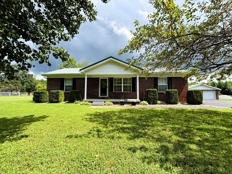 # 6529 Nat Rogers Road, Boston, KY. This seems too good to be true, but it's not!! ***Only 3 miles from the Bluegrass Parkway. 5 beautiful acres that includes (a) a meticulously kept, 1,580 sq. ft., brick ranch home (built new in 1997); (b) a 30' X 30', 2 car detached garage; (c) a 40' X 60' metal shop/barn (commode/sink area as well as a mezzanine with work shop below) with a separate 220amp electric service, electric furnace --15' walls and 13' garage doors; (d) 30' X 40' metal barn w/ 30' X 30' open shed (that 30' X 70' total). The home includes 3 bedrooms, 2 full bathrooms, a large eat-in kitchen, living room and a rear den (w/ wood stove) just off the kitchen. Laminate flooring as well as carpet in the bedrooms. Seller agrees to leave the kitchen appliances and clothes washer and dryer @ the agreed purchase price. This is a MUST SEE !!! ** So much here for only $450,000.