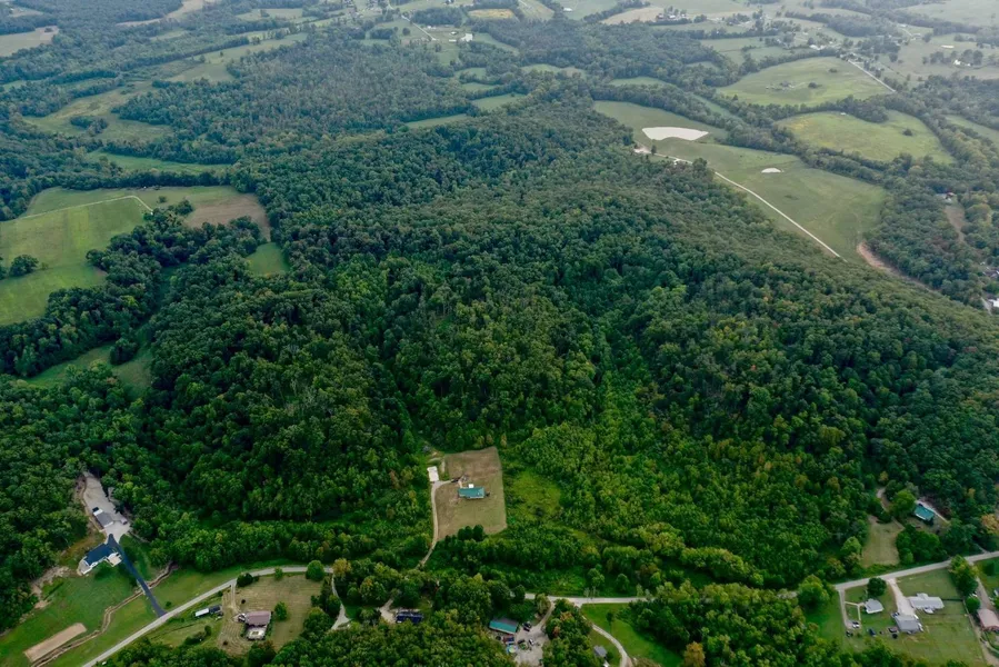Approximately 80 acres of mostly wooded land. Lots of deer and other wildlife have been captured on trail cameras. 1800+ feet of road frontage makes this a highly desirable tract of land that could easily be subdivided. Included on the land is a three bedroom, two full bath Bedford stone house that needs total renovation. There is also a large concrete pad where a metal barn used to be located. Directions: Take US-460 E and turn left onto Bedford Road and then turn right onto Reffitt Road.