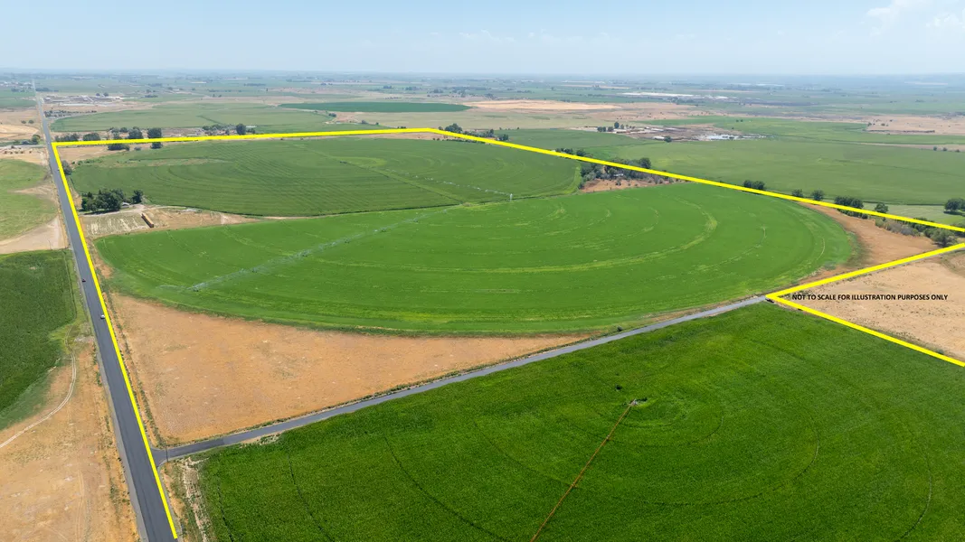 All offers to be received by: August 21, 2025. Sellers to respond to offers by: August 22, 2025. Possession of farm is when last crop is off. Rental leases shall be assumed. Sellers reserves the right to reject any offer, accept one, or multi-counter back to multiple Buyers. All offers are contingent upon Sellerss final approval. 170 shares of NSCC and 1.82 CFS for 109 +- ac., priority 1961. 3 pivots irrig. 203.92 +- ac., 2.8 +- ac. handlines. 2000 +- feet of canyon rim frontage, on separate tax parcel of 26.88 +- acres. Rental homes are 2bdrm,1bath.