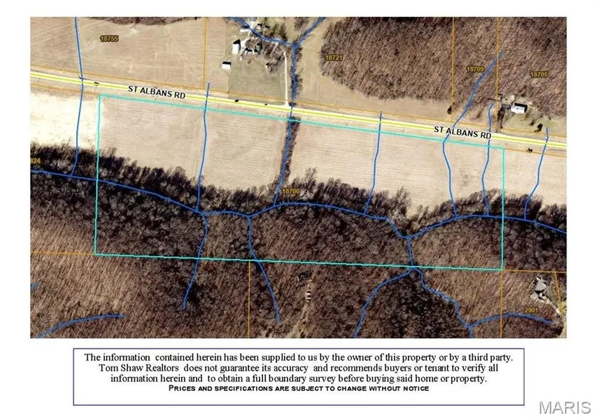 37.04+/- Acres of PRIME equestrian/farmland in Wildwood! 2,151 Feet of road frontage. Partly cleared and level, partly wooded, with Wild Horse Creek running through property. Close proximity to St Albans Country Club and Wildwood amenities. Not in a subdivision, just Wildwood and St. Louis County regulations. Must see!