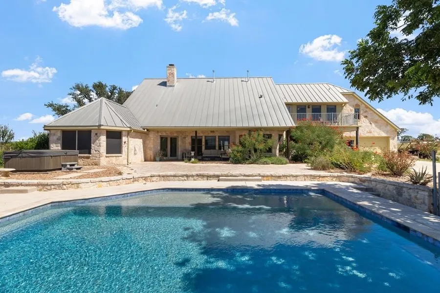 Open to strong offers and an easy close—step into real Hill Country ranch living. On 28+ ag-exempt acres in gated Spring Creek Estates, this place is set up for everyday ranch work and weekend hunts: fully fenced & cross-fenced pastures, private water well, smooth access for feeders and blinds. Wildlife is real here—axis deer, plenty of whitetail, and wild turkeys are often on camera; on-property hunting is allowed per owner/HOA guidelines (buyer to verify). The 2004 stone ranch home (~3,182 SF) is comfortable and practical: 4BD/3BA, airy great room with big views, granite-island kitchen (double ovens, gas cooktop), split primary suite, plus an upstairs flex/4th BR for gear, office, or gym. Out back: pool + patio for easy gatherings. Serious utility: a 4060 insulated workshop/barn with motor-coach–friendly door/overhang and RV/boat bay plus dedicated RV hookups—power and in-wall sewer—so you can park under cover and stay fully connected. Separate 1BD/1BA guest apartment—great for partners, family, or a caretaker. Horses welcome. Ag valuation keeps holding costs low.