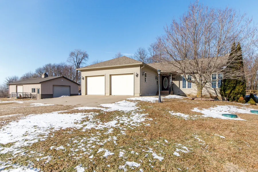 Discover the perfect blend of comfort, space, and outdoor opportunity with this ranch-style home built in 2001, set on an impressive 40 acres. The home offers three bedrooms, and three bathrooms, including an updated en-suite that adds modern comfort and convenience. Recent improvements include newer shingles, septic system, washer, and wood burning stove, providing peace of mind for the next owner. The windows in this home allow you to enjoy your property from the inside on any given day. The land is truly the highlight, featuring approximately 10 acres of tillable ground, 13 acres of grass/hay, and 17 acres surrounding the home with mature timber. This diverse acreage is ideal for outdoor recreation. This property has proven to be excellent hunting ground, with deer and turkeys harvested in recent seasons. Whether you're seeking a rural residence, hobby farm, or recreational retreat, this property offers endless potential with space to work, play and relax.