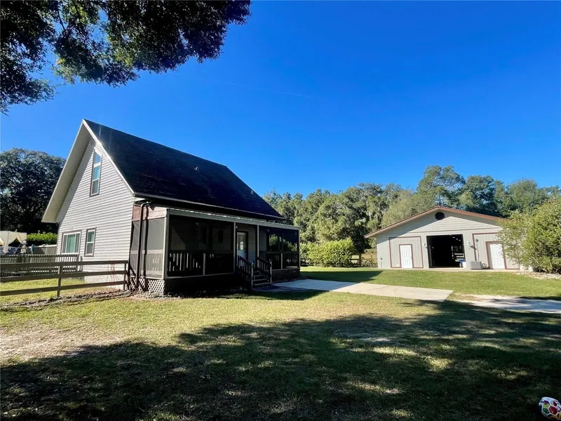 Great property now for sale in NW Ocala A1/Zone “X” in highly desirable Meadow Wood Farms! A big 4.4 Acre beauty with privacy fencing and gated entrance. New 4 board and no-climb fenced, Hurricane proof cement block barn is 2900 soft with AC Tack/sitting room/office, hay and feed room and wash rack! 6-14x12 cement stalls including auto water, fans, fly system throughout, grass field for jump or dressage, 4 runouts and 2 pastures. 1-50 Amp RV hook up fenced with its own septic and water. New Well Pump 2024. Newer Roof 2021, AC 2019, 2024 Well Pump, New Windows 2021. Home and Barn/Roof Professionally painted. Newly Pumped Septic tank, Generator Hook up, all make this a great investment/1st time home owner with beautiful level paddocks and the to die for barn. This one is ready to go bring your horses or your RV and enjoy the summer under the shade. After a long day, walk out the sliding glass doors and relax in the above ground pool with surrounding freshly painted wooden deck, w/updated shade sails and new sand filter/pump along with a new vacuum. While the barn is important this 2 story 2/2 with a Florida Room (make it an extra bedroom or office) is updated and makes a perfect nesting home for the Equestrian Enthusiast. Adorably designed A-Frame could easily be an AirBnB or make it your “stay” while showing during the nearly year round show circuits. Easy In and Easy Out to W328 just minutes to WEC/HITS/OBS and a short drive to the Horse Park or the Florida Greenways! This one checks all the boxes and is a wonderful opportunity to be in Ocala The Horse Capital of the World. Call for a showing appointment we don’t think this one will stay on the market long.