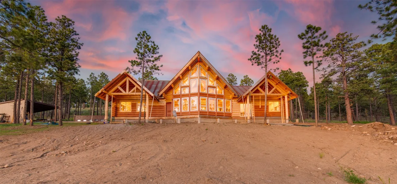 Nestled in a grove of ponderosa pine and embraced by the fresh mountain air of the Sangre de Cristo Mountain range, this property offers more than a view, it offers a way of life. The private road leads you to a unique home, resting perfectly in-tune with its environment. This home is located on the southern end of the Rocky Mountains, just 30 miles south of historic Taos, NM. It neighbors the Carson National Forest & Pecos Wilderness. It stands amongst a restored ponderosa pine forest. Two natural earth-fed springs. Numerous ponds created specifically to provide water to wildlife & for erosion control. This spacious ranch provides twenty +- acres of flood irrigated pasture from two acequias & 14+- acres of dry pasture. Registered with New Mexico Fish & Game for landowner elk tags in Unit 45 and is located within 60 to 70 miles of 5 ski resorts, namely Sipapu, Taos Ski Valley, Angel Fire, Red River and Ski Santa Fe. This log cabin lodge is newly built! It boasts a 27-foot cathedral ceiling,3 bedrooms, 2 bathrooms, hot tub, wood burning stove, and a 4-car garage/workshop with a bonus room upstairs, within its approximate 3500+- square feet, with an additional 1,200+- square feet of flawless decks - perfect for small intimate dinners or larger sophisticated gatherings. The 12-inch logs and floor plans that foundationally support this home were purchased from Montana Custom Log Homes Inc, the acclaimed creators and designers of custom-built, versatile, and handcrafted homes for generations. A view of hundreds of square miles of northern New Mexico valleys & mountains are out the west facing windows. Sunsets are glorious! Underground utilities, highspeed fiberoptic internet, cisterns for water catchment, 25 x 25 carport and so much more. Property excellent for that unique family get a way, secondary or primary home compound, or corporate retreat, the use is endless. A truly special and unique property awaits you! Don’t miss out! Schedule your viewing today.