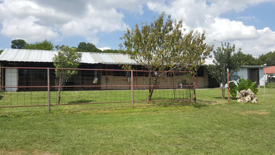 This is a beautiful and secluded 72.54 acres currently being used for a race horse farm and cattle grazing. The property consists of 4 separate tracts and is cross fenced along property lines. The 2.119 ac tract is improved with horse stables, 2 horse walkers and small working pens/corals with squeeze chute. The metal framed stables are 85' x 38' on a slab, consisting of (4) 12'x12' stalls (4) 10'x20' stalls, a wash rack, tack room and hay/feed storage. There is both city water & electricity in place at the stables. There is another slab in place that is approx 3,456 sqft and has the metal framing started for a either an equipment barn,large workshop or more stables. The property is mostly open but has several mature Pecan trees which would make a great build site. There is 30.032 acres of coastal for grazing or hay production, 29.695 acres of native pasture with Live Oak trees, 2 stock...