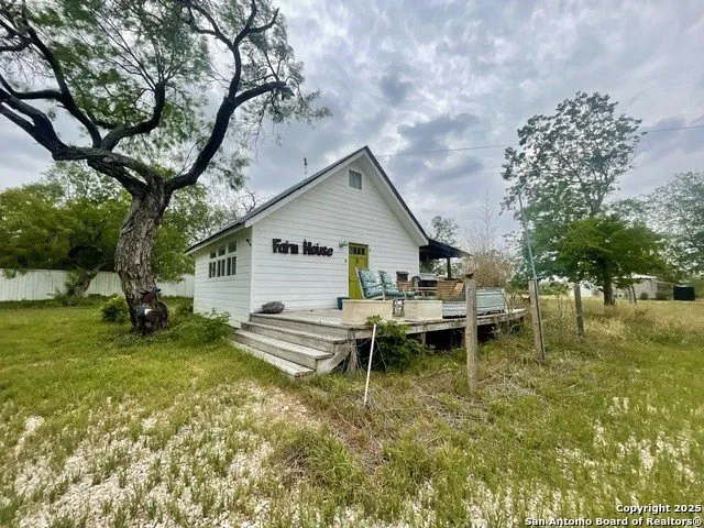 Nestled just outside of Marion, Texas, this 14.96-acre property offers an ideal blend of rural charm and strategic location, just 20 miles from vibrant downtown San Antonio and 10 miles from the historic allure of New Braunfels. This charming 1-bedroom, 1-bathroom, two-story house, exudes rustic elegance with its authentic Saltillo tile flooring throughout. The thoughtfully designed layout includes two porches, perfect for enjoying serene views of the expansive 14.96-acre property. Ideal for cozy living or a tranquil retreat. Situated outside of any flood plain, the property features a sewer located on the back of the property, giving this property potential for development. It is equipped with two barns, a chicken coop, and a greenhouse, perfect for agricultural pursuits or hobby farming. This property is unrestricted, which presents opportunities for a potential commercial ventu...