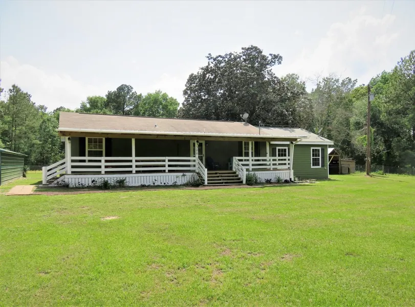 Farmhouse style home with a rustic flair! If you are looking for privacy this home may be the place for you! Right on the outskirts of town you will find this 2/2 with semi open floor plan on just shy of an acre. Large kitchen with updated appliances. Oversized living area with towering ceilings and mock electric fireplace. Enjoy the serene setting from your front porch that spans the length of the home overlooking the pond. Outside amenities include an oversized detached carport, chicken coop, small barn, detached storage building, fenced area for animals & plenty of room for a garden.