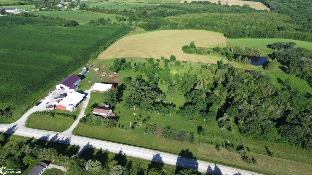 This 56-acre property near Highway 65 blends rural charm, fertile land, and comfortable living. It features a spacious 1930s two-story farmhouse with 6 bedrooms, 2.5 baths, a welcoming living area, and a functional kitchen with a walk-in pantry. The primary suite includes a luxurious ensuite with heated tile floors. Upstairs there are 4 bedrooms and a full bathroom; a full basement offers storage. Outbuildings include a new 2024 60x96 metal shed with heated floors and an office, a 44x52 horse barn, and a 36x85 barn with epoxy floors, a wood stove, and a sleeping addition. The property has mature trees, a garden, and a fire pit. About 37 acres are in corn, with 9 in hay-easily converted. This versatile property is ideal for farming, business, or peaceful living. The home and outbuildings are also available separately on 10 acres, subject to survey.