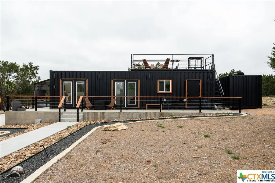 *Please text listing agent for gate access* Escape to your own private retreat nestled in the heart of the Texas Hill Country. Here you will find Cross Timber Ranch and Heartleaf Ranch, one of the only lots primed and ready for your living and entertaining enjoyment. On this 10.08 acre lot you will find 2 living quarters, each over 300 sq ft. The first is a redesigned container home featuring a bedroom, full bathroom, kitchenette and living area. The container home is amply equipped with air conditioning, heat and a water heater. Atop the container home is a spacious rooftop patio perfect for enjoying the beauty of the hill country and the natural roaming wildlife found within the fences of the Cross Timber Ranch grazing community. Just behind the container home is a charming barn dominium complete with bedroom, bathroom, indoor living area and spacious outdoor entertaining area. The barn dominium is equipped with air conditioning, heat, a water heater and utility room with washer/dryer connections. The owner's commitment to sustainability is evidenced throughout the property and includes a 12K-2400 RPS Solar System, a 250 ft deep natural spring well, a Pro+Aqua Elite Well Water Filter System and water softener (owned). Additional amenities found on the property that convey include 4 RV plugs, a playscape, 2 wildlife feeders, multiple TVs, 9 solar panels (owned) and 8 backup batteries, 8 Ring cameras, an operational outdoor shower, separate container structure for storage, a sprinkler system and multiple fire pits. Furnishings and furniture are negotiable but do not convey. Cross Timber Ranch is a high-fenced grazing community in which you will find free roaming game including Red Stag, Axis, Aoudad, White Tail, Mule Deer, Armadillo, Turkey, Roadrunners, Ram, Cattle and many more. Nestled among the extensive trees on this property you will also find a wet creek. Cross Timber Ranch is located near the new land purchased for Colorado Bend State Park.