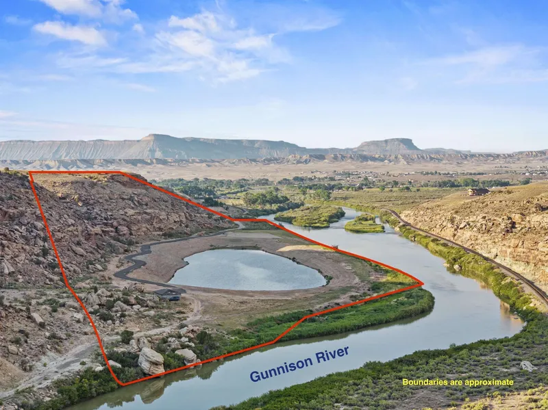 Gunnison River Sanctuary: A Unique 35-Acre Retreat. Nestled along the serene banks of the Gunnison River, the Gunnison River Sanctuary is a secluded 35-acre parcel boasting over 2,500 feet of pristine river frontage. This tranquil haven is enveloped by the natural beauty of the Dominguez-Escalante National Conservation Area, offering unparalleled privacy and direct access to nearly 328 square miles of protected land. As the last private parcel before the Bureau of Land Management (BLM) boundary, this property provides exclusive entry to a remote section of the conservation area along the river, accessible only through a private, keypad-gated entrance. Natural Features: The sanctuary is a symphony of natural serenity, where the gentle flow of the Gunnison River and the calls of waterfowl on the private 8-acre lake create a peaceful soundscape. The property is framed by dramatic canyon wal...