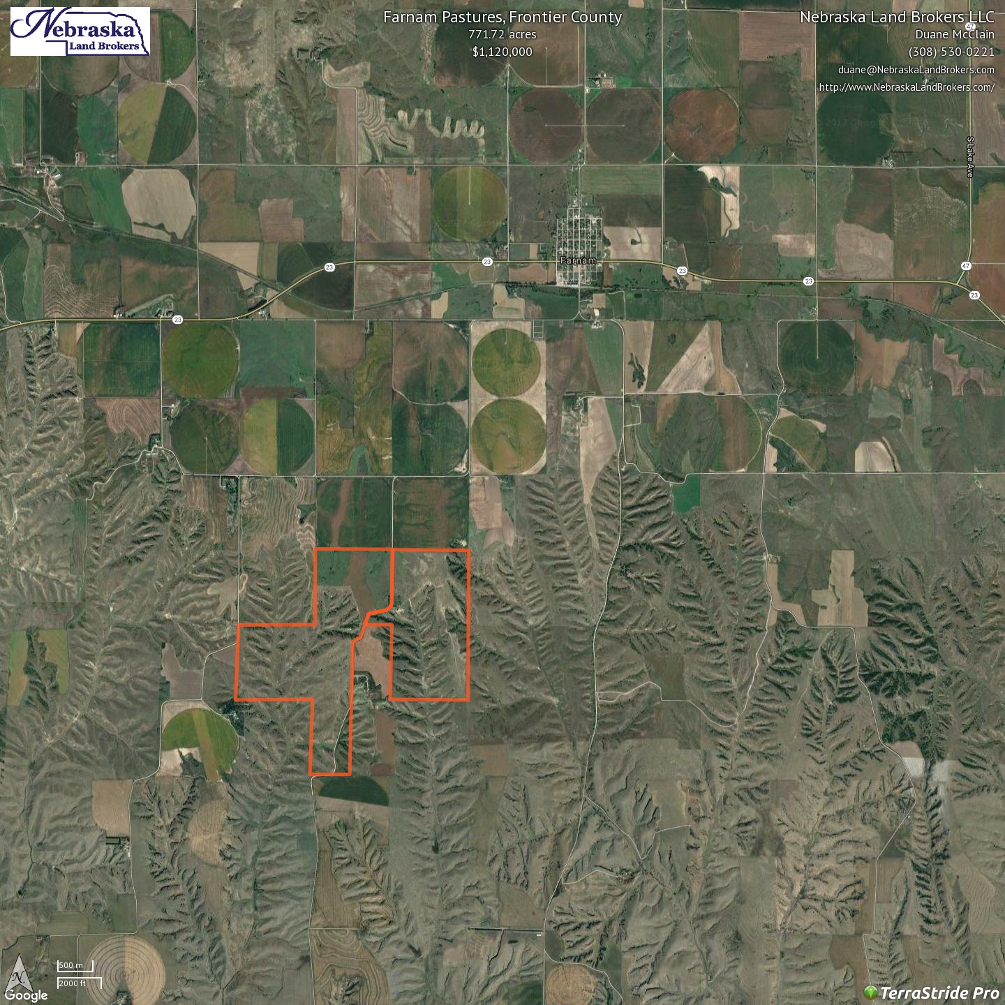 ACRES: Frontier County Assessor indicates there is a total of 768.64 taxed acres.