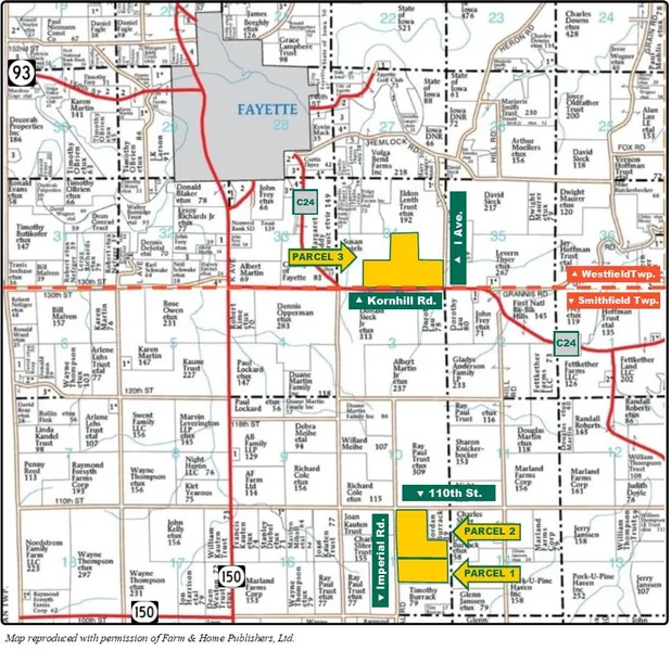 Three good, income-producing farms in a strong area of Fayette County. Parcels 1 and 2 are located 4 miles southeast of Fayette, while Parcel 3 is 1 mile southeast.
