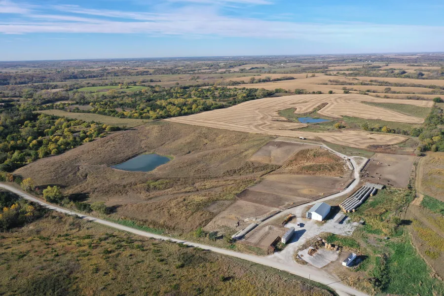 Take a look at this fully operational 28-acre m/l feedlot located just a few miles south of the Iowa line. At full capacity, this feedlot can comfortably hold 700 head of cattle. There are 8 holding pens that have nice steel pipe fencing. Some of the steel pipe fencing has been completed in the last year. All the holding pens have concrete J-bunk feeders and automatic waterers that are connected to rural water.