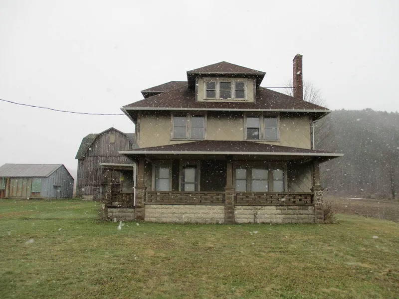 New York historic home with barn for Sale: This historic home on 3 acres built in 1916 exemplifies "old world" craftsmanship. With 5 full bedrooms, one and a half baths, and a large kitchen, it's perfect for a family. A formal dining room and large family room with wood burning fireplace is great for entertaining or just relaxing. Incredible woodwork is evident throughout. From beautiful hardwood floors to unique built-in cabinetry and a gorgeous solid wood staircase the quality is unparalleled. Heat is provided by a fuel oil fired boiler and cast iron radiators. Private water and septic are on site.