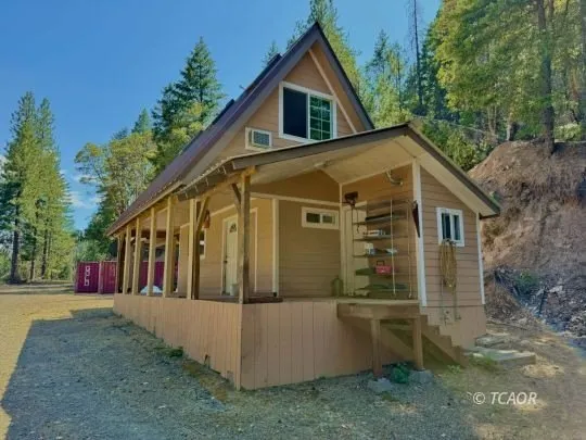 A paradise in the sky, high up on Hayfork Summit spanning across 2 parcels that total over 80 acres. The current owner of this little and well built home is ready to pass the property to someone who will use and enjoy it more than they were able to. Wrapped in covered porch, you're immediately met with versatile outdoor living space with views of mountains, blue skies, and the canyon below. Step inside to a large kitchen with tons of cabinet space for storage, dark color granite countertops and lighter earth tone faux stone flooring. Bathroom on the lower level, comfortable for a home of this size, and complete with a full bathtub and door to the exterior. There's a laundry room, storage or 2nd bedroom downstairs as well. Upstairs you'll find one large master suite with french doors to a private upper deck. Place a clawfoot bath for warm nighttime stargazing or some comfy patio furniture for your own private resort feel. Private Well is literally gushing with water from a pressurized aquifer, it's roughly 5 years old. 2 cargo containers are included in the sale for added storage. Your off-grid paradise awaits and it's ready for your homesteading dreams to come to reality.