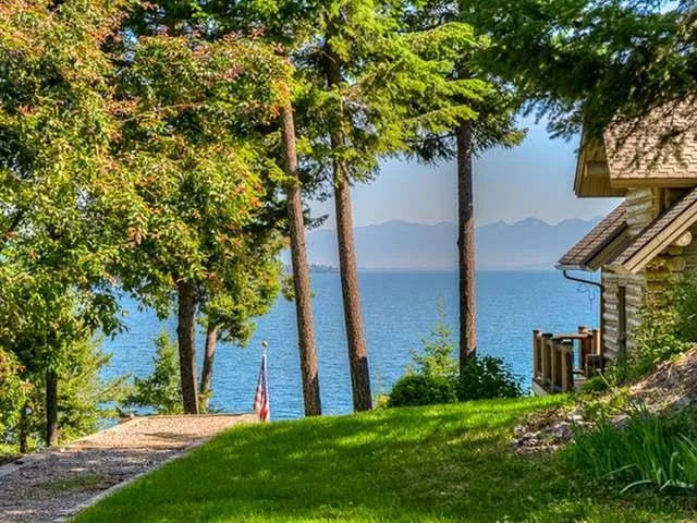 Splendid 380 feet of Flathead Lake frontage and Swan Range views for this western log home with southwestern architectural flair. Featured in Log Homes Illustrated, this 4 bedroom, 4 bath home contains no hallways to constrict natural flow. Many custom details, including a 41 foot natural stone fireplace, hand peeled logs, bent-wood understructure, hand-troweled plaster, and a main level dedicated completely to entertaining. The kitchen has a stone based eat-up bar with granite counters. There is a large butcher block island, stainless steel appliances, and tumbled marble backsplash. The home is accented throughout with character logs, natural curves, huge picture windows, and many visually appealing architectural designs. Designed by Kibo Group Architecture with logs produced by Pioneer Log Homes, the house and surrounding landscaping blends with the natural flow of the property. Additi...