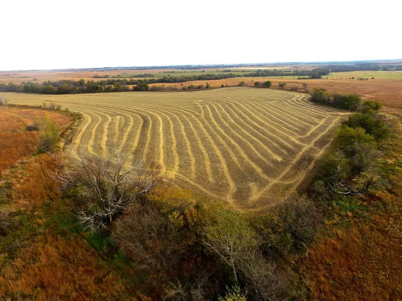 This 160 acre tract sits just west of Gridley, Kansas and offers an incredible mix of pasture and tillable production for return on investment plus recreational options. The 122 acres of pristine Native Bluestem Grass holds an incredible stand that has been well maintained showing true stewardship. Annual Spring burning rejuvenates the Bluestem, setting the stage for a season of hearty, nutrient packed grazing. Stocking rates average 90 days at 2.25 acres to 1 steer and 180 days at 4 acres to 1 steer. Cattlemen across the county ship to the Flint Hills of Kansas for Native Bluestem Grass, as it’s an annual producer of above average weight gains. 2 ponds located on the northeast side and southwest side provide water for livestock. 26 acres fenced off tillable ground, made up of Summit and Eram-Shidler soil, provide above average crop yields. 12 acres of timber runs along the north side of 4th road providing protection and creating a nice draw for Whitetail. Several quail coveys reside on the property and populations consistently growing each year. Elevation changes from 1,123 to 1,389 ft. above sea level give protection and beautiful 360-degree views. Newer 5-strand fencing finishes out this well maintained property. With annual income of $5,756.00, all mineral rights intact, this tract offers great return on investment with bonus recreation!