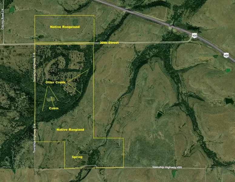 385 acres of Flinthills beauty. Near the headwaters of Otter Creek, perhaps the most pristine creek in the Kansas Flinthills, this land is very unique. There is a small "off the grid" cabin near the center of the property, in an open meadow, a stones throw from Otter Creek. The creek is lined with hardwood trees and very unique limestone rock formations that transition into the Bluestem pasture at the higher elevations. There is a nice Spring on top where "The Hat was Lost" and consequently named the Lost Hat Spring. One of the prettiest parts of Otter Creek meanders through the center of the property, with several open meadows in the low areas. Truly one of those very few places that checks nearly all the boxes of a recreational getaway with superb natural beauty, isolation, and wildlife.