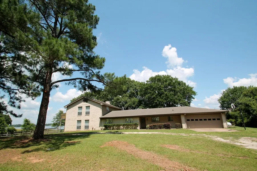 Flip this house? Absolutely. How often do you find a waterfront home with almost 3500 sq feet heat & air and over 4100 sq feet under roof at this price? The home is situated at the end of the road so it is very private. The lot is almost an acre deeded with close to another acre of lease back. It has a panoramic view of Lake Fork and probably close to 225 ft of shore line. The back yard has two massive oak trees providing shade all day long. The lease back area is almost park like, great place for kids to play. It has a double slip boathouse and party deck. Inside the home you have a large living area, dining area and kitchen. You have three bedrooms and 2 bathrooms downstairs. There is a game room with the half bath and then a massive, great room with huge, stone, WBFP. Your 4th bedroom is upstairs and it has its own private bath with walk-in closets. There is a deck upstairs looking out at Lake Fork. After all of this, you might just want to keep this home for yourself.