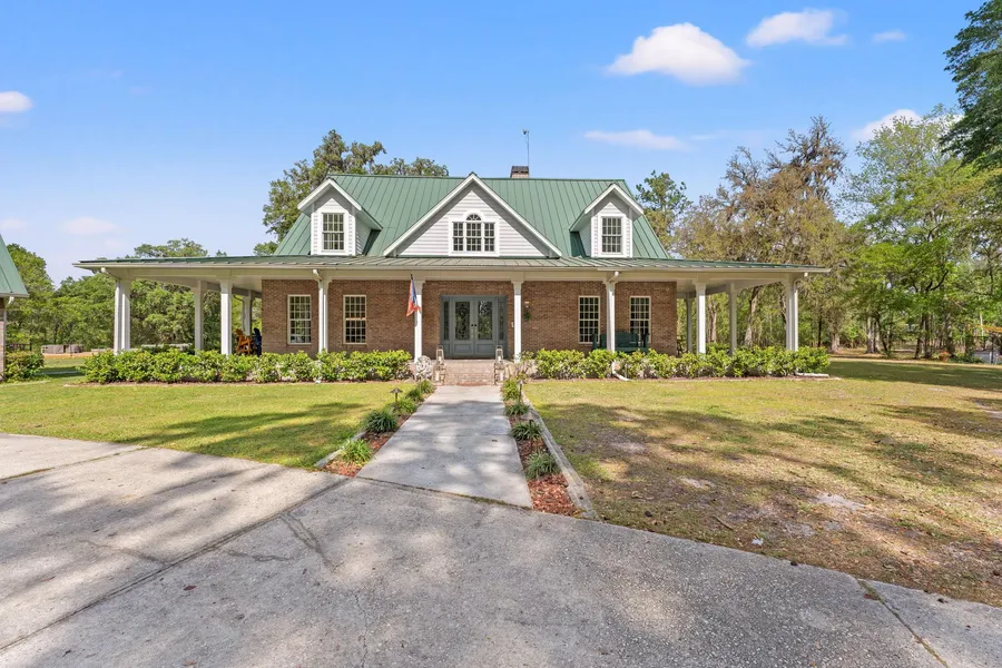 Welcome to 105 acres of pure Florida paradisewhere rolling hills, open pastures, flowering fields, and towering grandfather oaks create a breathtaking backdrop for a truly exceptional ranch lifestyle. This versatile property is a harmonious blend of beauty, function, and income potential, featuring a mix of planted pines for future return, miles of cut riding trails, and stunning views at every turn. At the heart of the property sits a beautifully remodeled 4-bedroom, 4-bathroom brick home offering over 4,600 sq ft of refined living space. With a wraparound porch that welcomes you with classic country charm, the interior is a seamless mix of modern luxury and cozy warmth. The bright, open floor plan flows effortlessly through expansive common areasideal for large families, entertaining, or holiday gatherings. Three of the four bedrooms are private en-suites, providing space and comfort f...