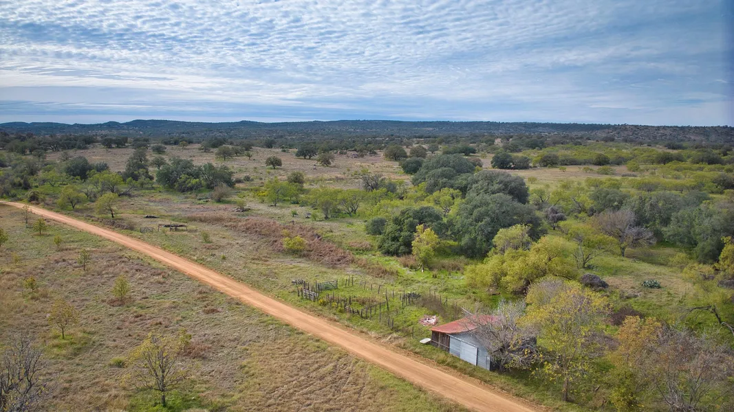 Spectacular hilltop views with park like landscape will capture your attention as you meander through the ranch. Granite outcrops add additional eye appeal. North Fork of Sand Fernando Creek (wet weather) traverses the western portion of the ranch. Scattered oak, few mesquites and no cedar. Fenced and cross-fenced in two pastures. Recently drilled 12gpm water well. Small metal shed with concrete floor. County road frontage with additional, recorded, short easement access where property veers from county road. No easement road through ranch. Wildlife valuation for tax purposes.