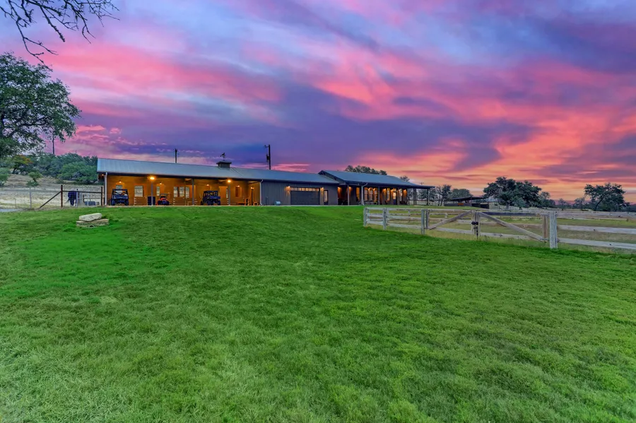 6242 FM 1888, Texas is a stunning property located in the Texas Hill Country, spanning across 362.9 acres. The main house offers luxurious living with its exquisite features and breathtaking views. It boasts two bedrooms and two bathrooms, with vaulted ceilings that create an open and spacious atmosphere. The house is equipped with electric- powered blinds, ensuring convenience and ease of use. Pella windows and doors not only enhance the aesthetic appeal but also provide excellent insulation. The interior of the main house is adorned with beautiful wood floors, adding warmth and elegance to the living space. The kitchen is a chef's dream, featuring GE Cafe stainless steel appliances, including a state-of-the-art WiFi induction range. Silestone countertops and custom cabinets further elevate the kitchen's functionality and aesthetics. Additionally, the property benefits from Starlink internet connectivity, ensuring high-speed internet access. Adjacent to the main house is an attached bunkhouse that offers additional accommodation options. It includes an extra bedroom with a Murphy bed and a bathroom, providing flexibility for guests or extended family members. For equine enthusiasts, this property offers exceptional features to cater to their needs. An arena provides ample space for training and riding activities. There are four luxurious horse stalls on the property, each measuring 15x15 feet and equipped with an automatic water system for convenience. The grazing pastures allow horses to roam freely, while horse trails throughout the property offer scenic routes for exploration. Additional equestrian amenities include a tack room, feed room, and a lean-to shelter. In addition to the main house and equine facilities, there is also a large barn/shop on the property. This versatile structure can be used for various purposes such as storage or as a workshop