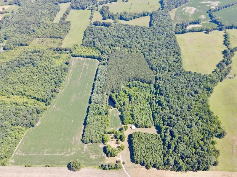 67.76 Acre versatile tree farm offering a blend of forestry, row crops, ponds and home site. Located in a serene rural setting at the end of the road, it boasts mature stands of oak, walnut, poplar and pine, perfect for sustainable logging or hunting. The fertile soil supports diverse row crops, ideal for rotation or farming. Several trails lead you throughout the property among the dense woods and two separate ponds. A cleared, level area near the road offers an ideal spot for a future home, complete with mature oak trees, well and metal barn. This multi-use property is equipped with a well and access to utility district water, enhancing its development potential. Whether for agricultural ventures, forestry management, or residential dreams, this farm promises both productivity and tranquility.