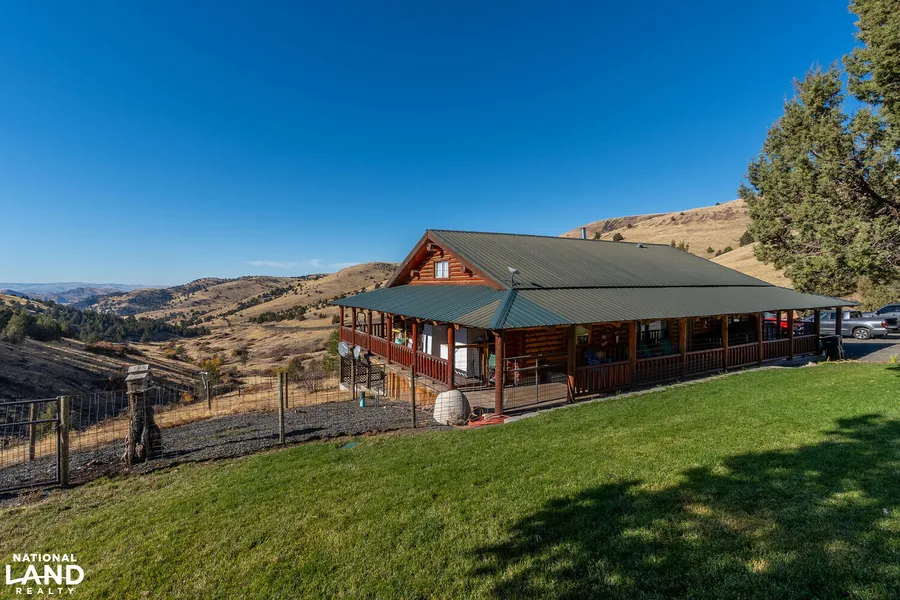 This beautiful 778-ac ranch, nestled among tall ridges and tree-lined draws, has 2 homes, chicken coop, shop, barn, and hay structure. The perimeter fenced ranch is home to deer, elk, chukars, and turkeys. Numerous springs supply water for livestock and wildlife, making it a sportsman's paradise. The 2016sf impressive log home is warm and welcoming with massive log accents inside, barn door, and a wraparound porch for incredible views down the canyon. Enjoy the flickering, warm fire of the wood stove on cool days. This home displays exquisite craftsmanship in every square inch. The 875sf beautiful second home enjoys outstanding views of the surrounding mountains and down the canyon from the inside of the home or from the partially covered back deck. Envision an income-producing Airbnb, or second home for multi-generational living. Enjoy endless hours on horseback or ATV on the many trails available, or the view from either deck. Owning this property would be a dream come true!