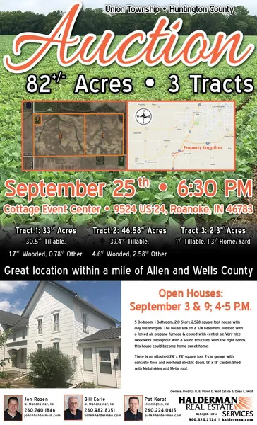 Auction Location: Cottage Event Center: 9524 US-24, Roanoke, IN 46783