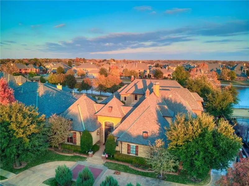 Stunning! A one-of-a-kind European-style home in one of Oklahoma City’s most sought-after neighborhoods. This entertainer’s dream home features a chef’s kitchen with three dishwashers, a huge pantry, commercial gas range, two sinks, instant hot and cold, warming drawer, seating at the massive island for 6, an informal dining area all open to the expansive living room with a stone fireplace. Four bedrooms under roof plus a multi-use casita by the pool with a full bath, kitchenette, and walk-in closet. The master suite faces the lake and features a separate sitting room with fireplace, two large walk-in closets, and separate vanities and toilets. Two staircases, an elevator, a theater and game room, multi-purpose computer/play room, exercise room with mirrors on three walls, home office with built-ins galore, an aboveground safe room, two laundry rooms, plus walk-in attic. The formal living room features a two-story cast stone fireplace with built-ins and floor to ceiling windows with lake view. Windows flood the home with natural sunlight. A pool sits in the courtyard, surrounded by lush landscape and an outdoor kitchen. A second patio faces the lake and features cast sone columns and an outdoor gas fireplace. Above is a lovely balcony overlooking the lake. The four car oversized garage features stained and etched concrete floor, two mini-splits, large sink, tons of built-in cabinets and counters, speakers, ceiling fans, and space for a second refrigerator, a safe, a freezer and an ice maker. This home is also energy efficient with geothermal and blown insulation.