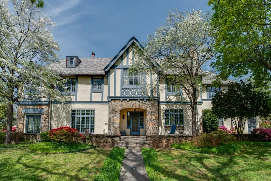 "Friendly Hills", a 1924 English Tudor-style home with 17+ manicured acres enveloped by the Foothills of the Blue Ridge Mountains. This estate home, registered with NC Historic Preservation, was once owned by the renowned author, Margaret Culkin Banning. The log cabin that helped inspire her writings is still a part of this beautifully unique property. The moment you enter the foyer, this home will draw you into its one of a kind interior. The historic flavor of the wood floors, beamed 20' ceilings and rock fireplace with a mantle made by the famous "Tryon Toymakers" exudes old-world style. The home features amazing rock work inside and out, from walkways to columns. Its amenities include a saltwater pool, a 3BR/2BA guest house and a large two-level shop that could be converted to another guest quarters. This private, knoll-top estate property is situated only 1.5 miles from downtown Tryon.