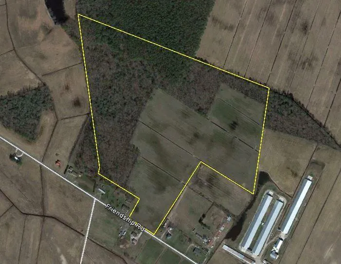 Farmland totaling +/- 59 acres including +/- 25.5 tillable acres and +/- 33.5 wooded acres on Friendship Road in Wicomico County. Good potential to build a home or lodge - No Conservation easements - Quality habitat for deer and turkey hunting
