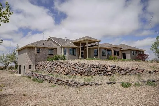 A truly exceptional custom home nestled on 39 acres of open land. Front Range views add to this luxurious home. The rich variety of wood floors from black ash, black cherry, and yellow birch compliment the openness of the large rooms with vaulted ceilings. A unique open layout on the upper level features a great room accented with copper walls surrounding a marble fireplace. The three large bedrooms have a sitting area, private bath, and walk in closet. There is an extra-large laundry room on the main level. In the finished basement there is a recreational room, study/hobby room, theater room, and guest room with bathroom. Storage is ample in the remaining 1,600 sq. ft. A smooth wired electric fence surrounds the pasture and adjoining 40 acres that is also available for lease or sale.