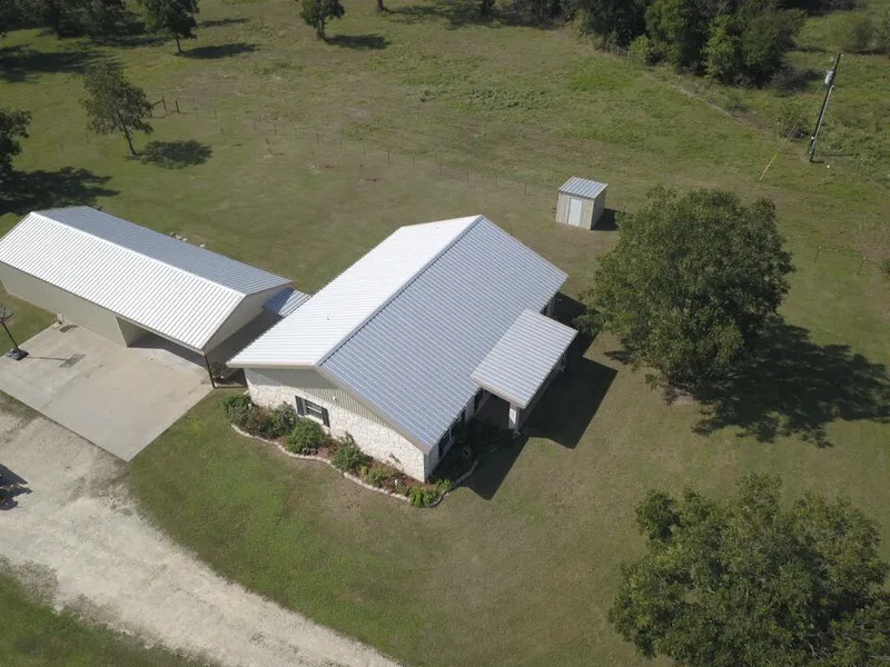 This Beautiful 1879 sq. ft. metal and stone home nestled on 18.52 acres sprinkled with big oak and pecan trees is sure to captivate you immediately! This home is located on a quite County road less than 5 minutes from town! The high in demand open design kitchen/dining/den invites you in with the warm neutral paint choice, beautiful custom design cabinetry, granite counter tops, large walk-in pantry, island breakfast area, farm house sink, crystal chandeliers and large kitchen window to enjoy the view! Large Master bedroom and bath are accented with a ship lap wall. Master has a modern day old fashion tub, cultured marble shower and vanity and a huge walk in closet. Bedroom two is large enough to handle 2 queen beds and has a huge walk-in closet also. Third bedroom is currently being utilized as an office. The two car carport separates a bonus guest house complete with kitchenette and bath and a nice size shop. Land is open with big trees, a new pond and a winding seasonal creek (Frost Creek). Location is perfect with all the convenience of living in town yet just outside the City Limits. LCR (Limestone County Road) is a hard top surface road off of FM 1245 just West of Groesbeck. The location of the property is secluded with a winding rock road to the house. No visible neighbors so perfect country living! The land has just enough cover for hunting. New fencing in place and Ag-exempt!